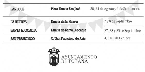 La Concejalía de Festejos continúa su colaboración y planificación, junto con asociaciones de vecinos y colectivos sociales de Totana, en la organización de las fiestas en los barrios y pedanías del municipio durante este verano, en el que se celebrarán un total de 16 festejos que se prolongarán hasta el primer fin de semana de octubre.