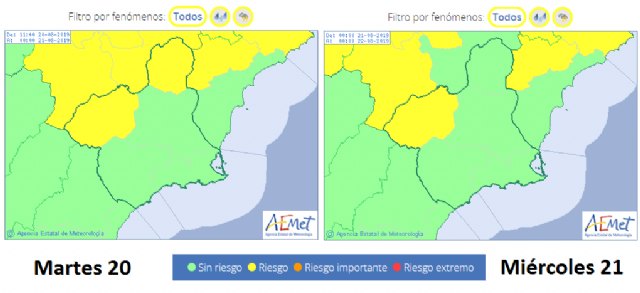 La inestabilidad regresa a la Región de Murcia entre la tarde de hoy martes y mañana miércoles.