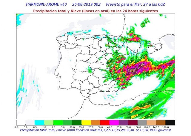 A última hora del día, las tormentas pueden empezar a afectar a zonas de la Región de Murcia, siendo localmente fuertes, pero sin ser la probabilidad muy alta todavía.