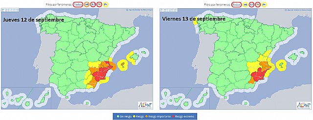 Por ello se ha activado el aviso rojo por lluvias y tormentas entre las 06:00 horas del jueves y las 06:00 del viernes. Se pueden acumular 70 mm/h (intensidad torrencial) y 200 mm/12 horas. Además, las tormentas pueden ir acompañadas de abundante aparato eléctrico, granizo y fuertes rachas de viento. El aviso naranja también estará activado durante la madrugada del jueves y la mañana del viernes, y el amarillo durante la tarde el viernes, por lluvias y tormentas fuertes o muy fuertes localmente. Los avisos podrán ser modificados según vaya evolucionando el episodio.