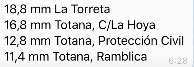Sobre las 3,30 hemos tenido una fuerte tormenta acompañada de carga eléctrica. Los valores recogidos en distintos puntos del casco urbano son estos.