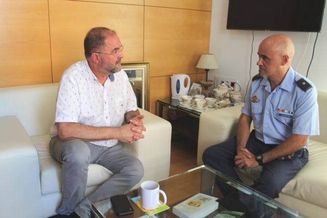 El alcalde de Totana, Juan José Cánovas, ha recibido, en representación de la Corporación municipal y la ciudadanía de Totana, a nivel institucional y protocolario, al nuevo comandante jefe del Mando Aéreo de Combate del Cuerpo General del Ejército del Aire EVA-13, Jaciento Alarcón Cervantes, quien asumió su destino el pasado 1 de agosto y tomó posesión del mismo el día 21 del mismo mes.