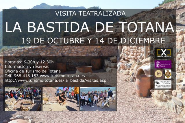 La Concejalía de Turismo y Yacimientos Arqueológicos del Ayuntamiento de Totana ha programado para este otoño en el yacimiento arqueológico de La Bastida dos visitas teatralizadas, que se celebrarán los días 19 de octubre y 14 de diciembre; y una ambientada que tendrá lugar el 16 de noviembre, respectivamente.
