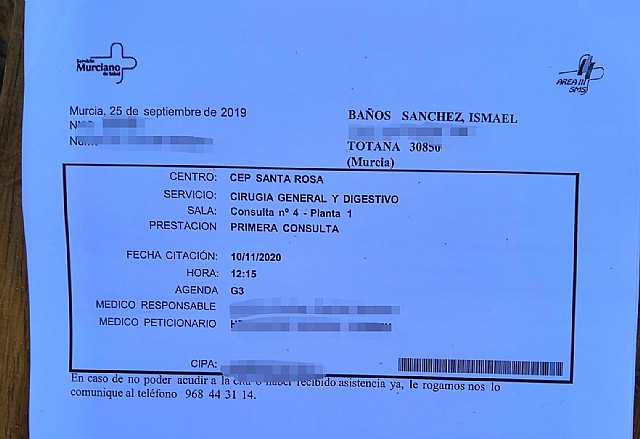 Pues mi sorpresa llega cuando mi cita asignada es para el 10 de Noviembre de 2020. Más de 400 días de espera hasta poder ser tratado.