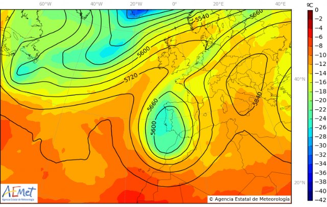 Entre el lunes y el martes se formará una DANA que se colocará sobre el suroeste de la península. En esta posición, su “zona de ataque” será la zona mediterránea, donde las lluvias serán generalizadas. El miércoles se movería un poco hacia el este, siendo del nordeste de España la zona más inestable.