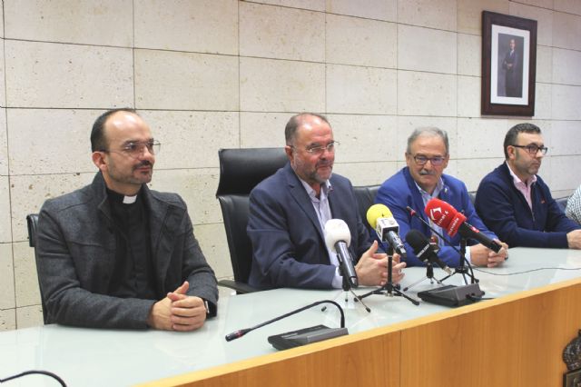 En el encuentro institucional estuvieron presentes el párroco y vicepresidente de la Fundación La Santa, Francisco José Fernández, el presidente de la Asociación de la Virgen y Mártir Santa Eulalia de Mérida, Luis Miguel González Pérez, el mayordomo de La Santa de Totana, Francisco Miras, y patronos de la Fundación La Santa.