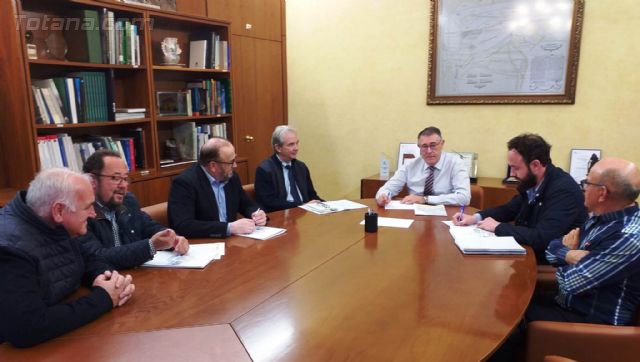 El presidente de la Confederación Hidrográfica del Segura (CHS), Mario Urrea, se ha reunido esta mañana con los regantes de la Comunidad de Regantes de Totana con el fin de presentarles el trazado previsto en el anteproyecto de la tubería que conectará las desaladoras de Águilas y Valdelentisco, que atraviesa los términos municipales de Alhama de Murcia y Totana, al objeto de que por parte de los usuarios puedan hacer aportaciones.