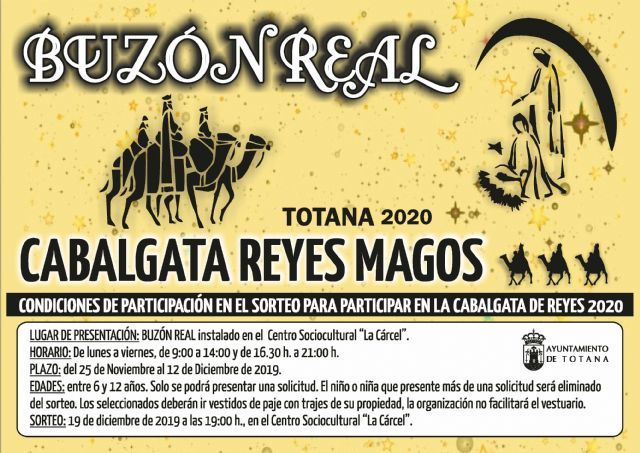 El sorteo de las personas participantes en la Cabalgata de Reyes 2020 tendrá lugar el 19 de diciembre, a las 19:00 horas, en el Centro Sociocultural "La Cárcel".