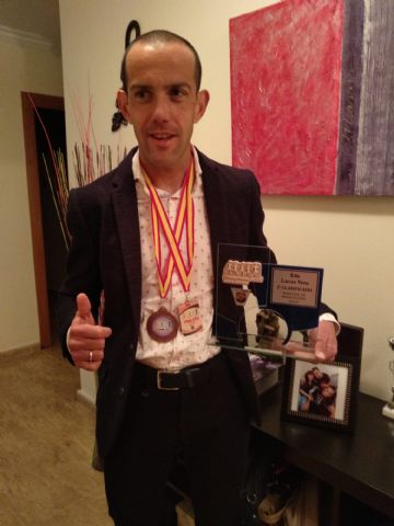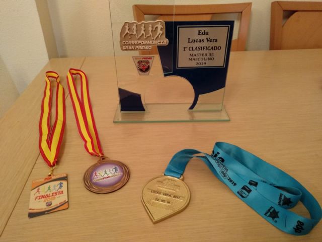 El pasado viernes 29 de noviembre tuvo lugar la gala CorrePorMurcia en la cual estuvo presente nuestro compañero Edu Lucas, quien recibió un reconocimiento tras su gran actuación en esta liga. Edu obtuvo esa noche dos trofeos más que merecidos: el tercer puesto de la general y primero en la categoría Veterano A.