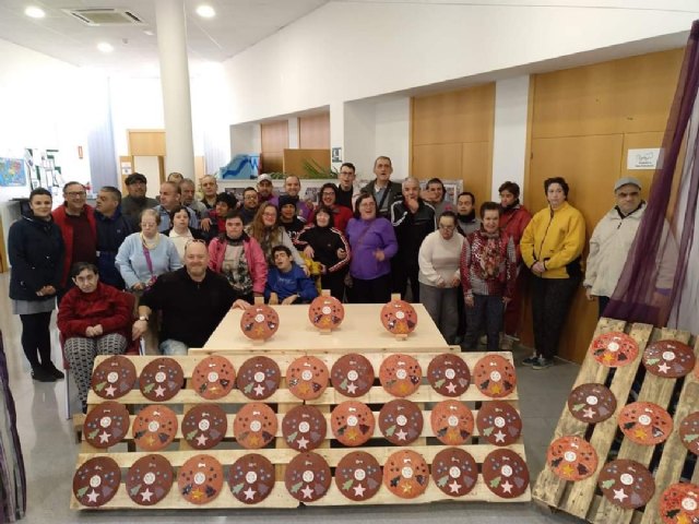 Usuarios de los Centros de Día para la Discapacidad de Totana han hecho entrega a la Asociación de Comerciantes los detalles ornamentales navideños con los que adornarán estas fiestas sus establecimientos comerciales en esta localidad, y que han sido confeccionados por éstos durante los últimos meses.