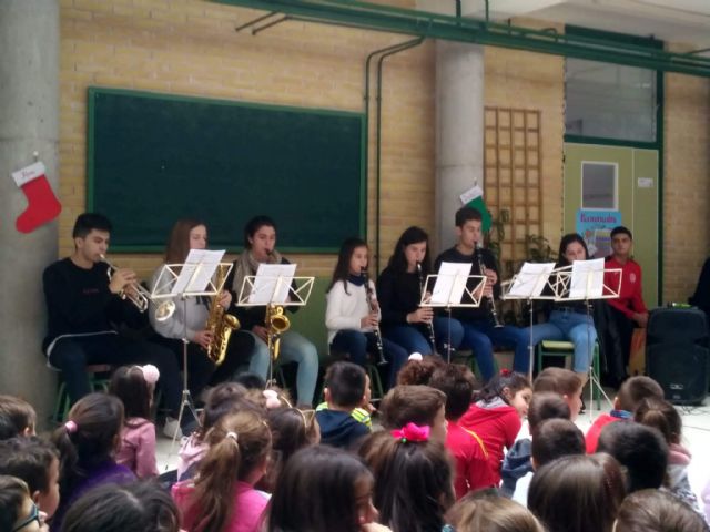 A lo largo de la pasada semana, los alumnos del Coro y la Banda de Música del IES Juan de la Cierva y Codorníu, dirigidas por el profesor Jesús Martínez Cánovas, han llevado a cabo diversos Conciertos por la localidad para acercar la música a los más pequeños: el Martes 17 de Diciembre en el CEIP Tierno Galván y el Viernes 20 en el CEIP La Cruz y en el propio IES Juan de la Cierva, tal y como informó a Totana.com el profesor.