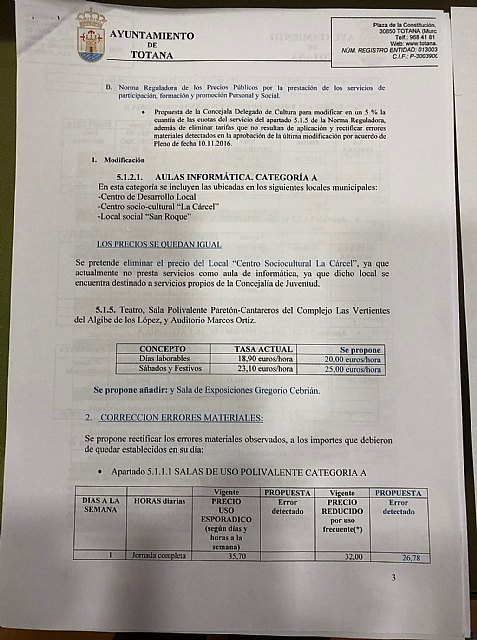 Mientras en Cartagena elevan el IBI en Totana, rechazan una ínfima actualización de Tasas y Precios Públicos para cumplir con el Plan de Ajuste que impone el Ministerio por las ayudas que nos ha prestado.