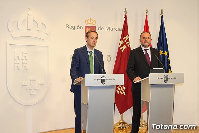 Al término de la reunión con López Miras, el primer edil totanero compareció ante los periodistas, en sala de prensa, acompañado por el consejero de Presidencia y Hacienda, Javier Celdrán, con el fin de dar cuenta del resultado de esta reunión institucional con el presidente de la Comunidad Autónoma, la primera de esta legislatura.