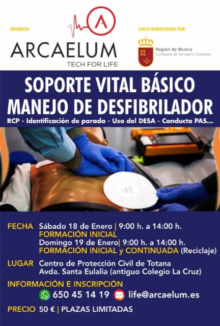 Este curso está dirigido a todos los estudiantes, monitores, profesores y docentes, agentes de la Policía y el cuerpo de Bomberos, o personal sanitario; que podrán obtener más información e inscribirse llamando a los teléfonos 650 451419, o a través del correo life@arcaelum.es. Éste tiene un coste de 50 euros y las plazas son limitadas.