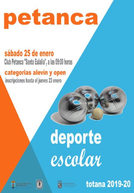 La Concejalía de Deportes organiza el próximo sábado 25 de enero la Fase Local de Petanca de Deporte Escolar, a partir de las 9:00 horas en las instalaciones del Club de Petanca "Santa Eulalia", que además colabora en la organización de esta actividad escolar.