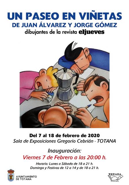 La sala de exposiciones “Gregorio Cebrián” acoge, del 7 al 18 de febrero, la muestra “Un paseo de viñetas”, de los dibujantes murcianos, Juan Álvarez y Jorge Gómez, la cual se inaugura este próximo viernes, a partir de las 20:00 horas.