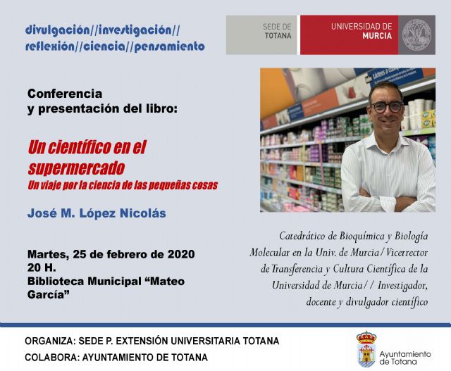 López Nicolás es autor de varios libros, el más reciente "Un científico en el supermercado. Un viaje por la ciencia de las pequeñas cosas", cuyo título dará nombre también a esta actividad que ha organizado la Sede Permanente de Extensión de la Universidad de Murcia en esta localidad.