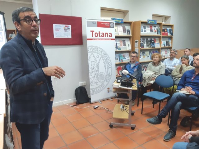 El estilo claro, directo y ameno del vicerrector de la UMU deleitó al numeroso público, más de 70 personas, que llenó el aforo de la biblioteca municipal de Totana.