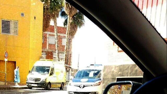 Una patrulla de la Policía Local se personó en la calle Santa Bárbara y la cortó al tránsito de peatones y vehículos para extremar las medidas de seguridad mientras que los progenitores y el bebé eran introducidos en una ambulancia.