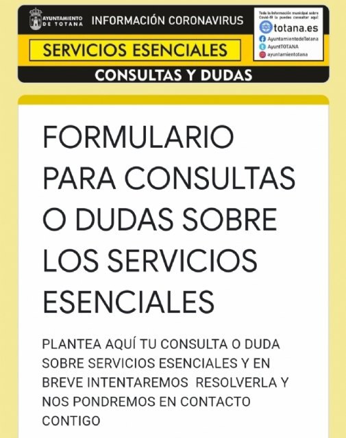 El Ayuntamiento de Totana ha atendido desde el pasado lunes 30 de marzo cerca de una treintena a través del servicio telemático de asesoramiento y orientación laboral dispuesto en la web municipal www.totana.es sobre las actividades y servicios esenciales susceptibles de mantenerse tras la última entrada en vigor del decreto ley.