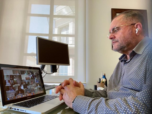 El primer edil ha intervenido hoy en la reunión semanal de coordinación de alcaldes con el presidente de la Comunidad Autónoma, Fernando López Miras, la vicepresidenta Isabel Franco, y el consejero de Salud Manuel Villegas, por la gestión del COVID-19 en la Región.