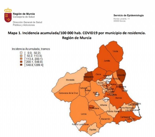 Los municipios que han registrado dos casos son Cieza, Mazarrón y Torre Pacheco y los municipios con un caso registrado son Alcantarilla, Jumilla y Puerto Lumbreras.
