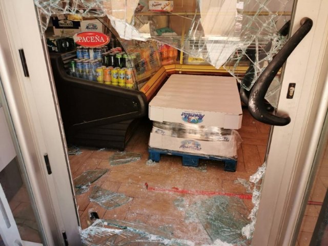 La patrulla policial de servicio se dirigió inmediatamente al lugar, junto con la patrulla de la Guardia Civil, pudiendo observar al llegar que la persiana metálica del establecimiento estaba abierta, y se podía observar un cristal fracturado, sospechando que el autor de los desperfectos podía estar dentro del local.