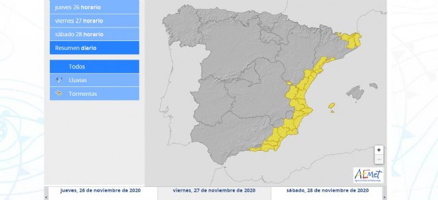 Tal y como estaba previsto, va a haber precipitaciones generalizadas en la Región de Murcia, siendo el día crítico el viernes, y también la madrugada del sábado.