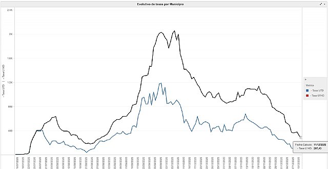 En el día de ayer, se suma un nuevo positivo y la Incidencia Acumulada en los últimos 14 días desciende a 287 casos por 100.000 habitantes.