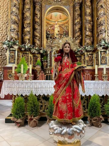 Esta tarde, a las 18.00 horas nuestra Patrona Santa Eulalia ha abandonado el templo donde ha permanecido con motivo de las fiestas patronales, marcadas por la crisis sanitaria de la COVID-19, desde el día 7 de diciembre hasta el día de hoy 7 de enero y ha regresado a su camarín en el Santuario, donde permanecerá hasta el próximo 8 de Diciembre de 2021.