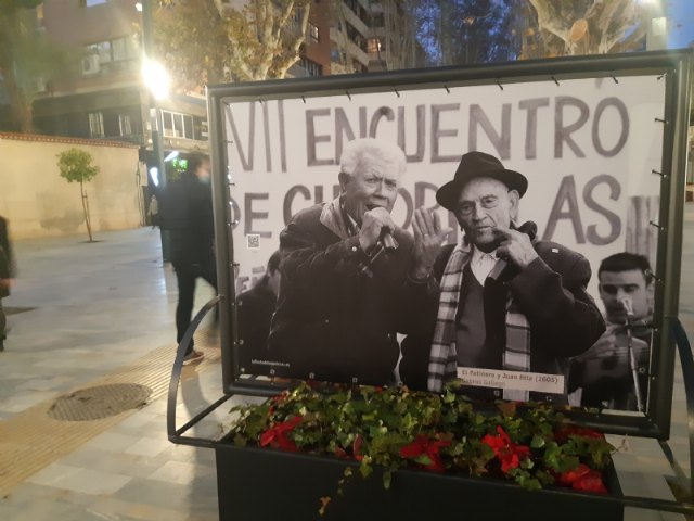 El Ayuntamiento de Murcia ha dedicado un espacio privilegiado a Juan Tudela Piernas, el Tío Juan Rita, en la exposición fotográfica de gran formato que recuerda el Encuentro de Cuadrillas de Patiño, organizada en el Paseo Alfonso X de la capital del Segura hasta el próximo 22 de enero.