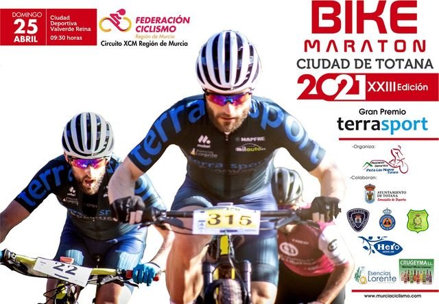 La Asociación Deportiva Peña Las Nueve, os invita a una nueva edición del XXIII Bike Maratón de BTT Ciudad de Totana - Gran Premio Terra Sport, prueba nacional puntuable para Circuito de XCM de la Región de Murcia. Por motivos de protocolo COVID, este año cambia su emplazamiento a la Ciudad Deportiva Valverde Reina, la fecha como es tradicional será el último domingo de abril (25/04/2021).
