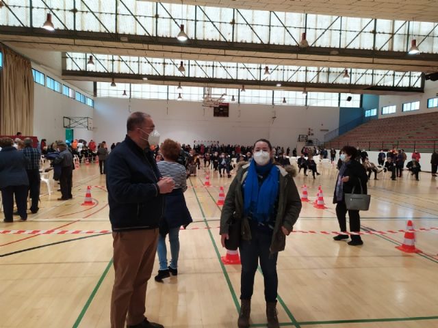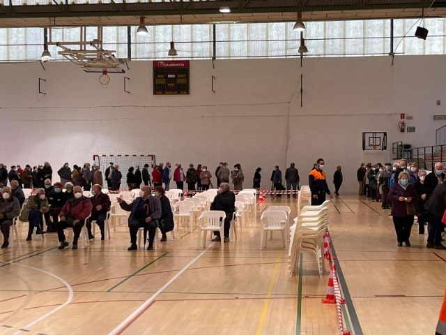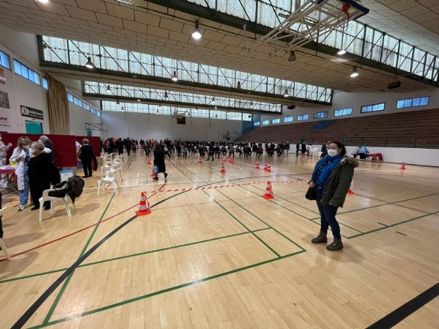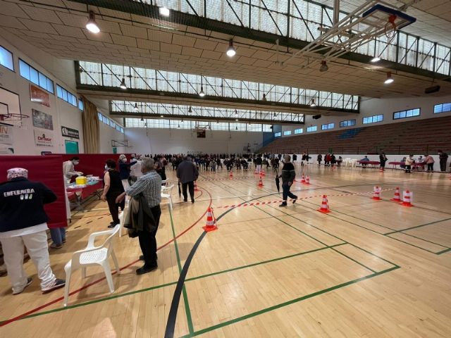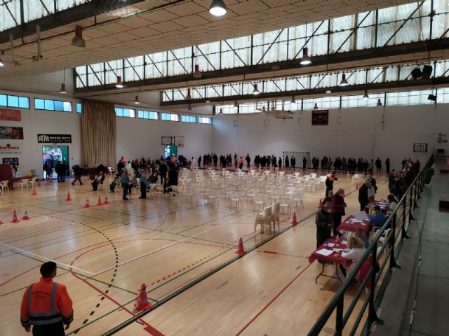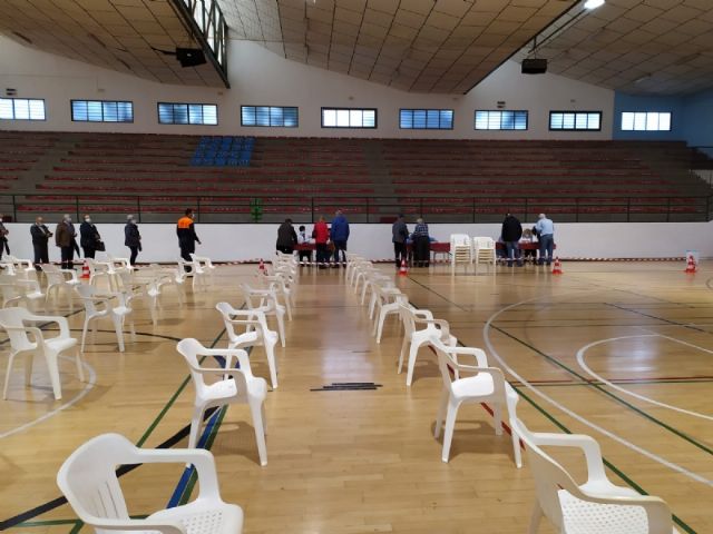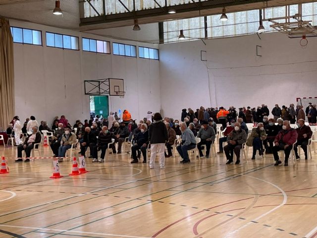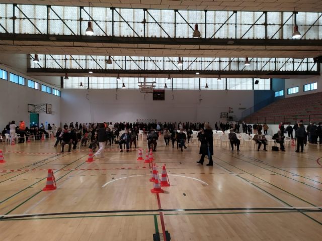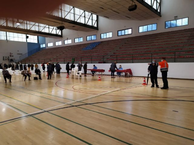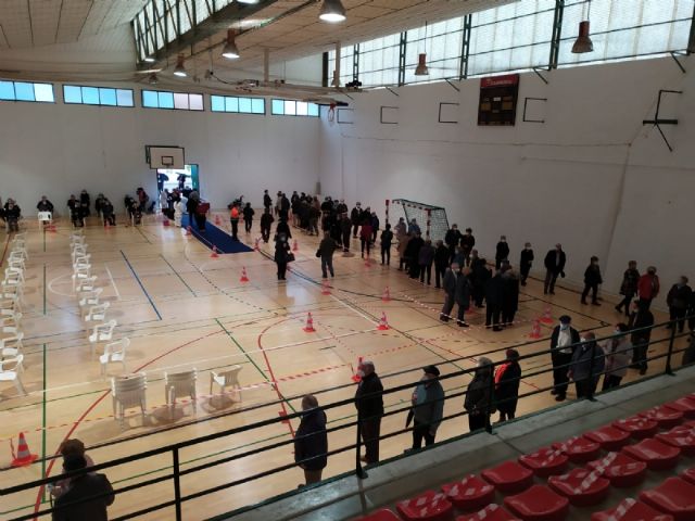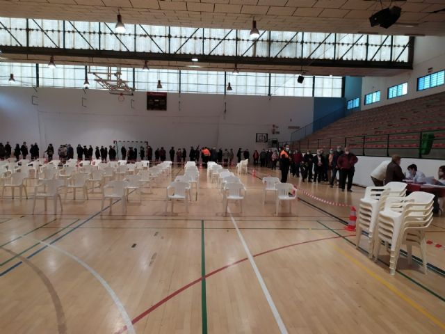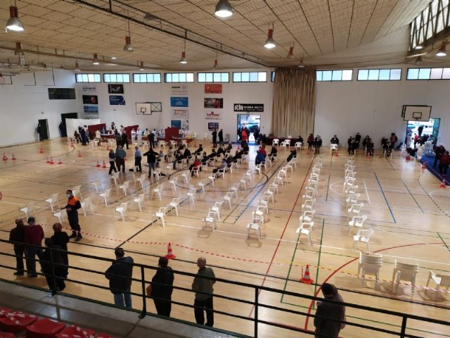 Un total de 2.232 personas de las cerca de 2.800 convocadas se han vacunado contra el COVID-19 en Totana durante el proceso de inoculación masiva que se ha celebrado este miércoles y jueves por la mañana, en las últimas 48 horas, en el Pabellón de Deportes “Manolo Ibáñez”, afectando a vecinos y vecinas en franjas de edad más adulta si bien se abrirá al resto de la población en las próximas semanas conforme haya disponibilidad de vacunas.