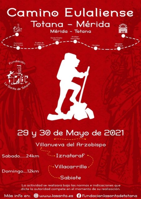 La Fundación La Santa de Totana tiene previsto avanzar en el Camino Eulaliense entre las ciudades de Totana y Mérida, con la celebración de dos nuevas etapas, los días 29 y 30 de mayo.