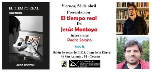 Con motivo de la celebración del Día del Libro, mañana viernes 23 de abril el IES Juan de la Cierva de Totana ha organizado la presentación del libro recientemente publicado por Boira Editorial “El tiempo real”, cuya autoría se debe a Jesús Montoya.
