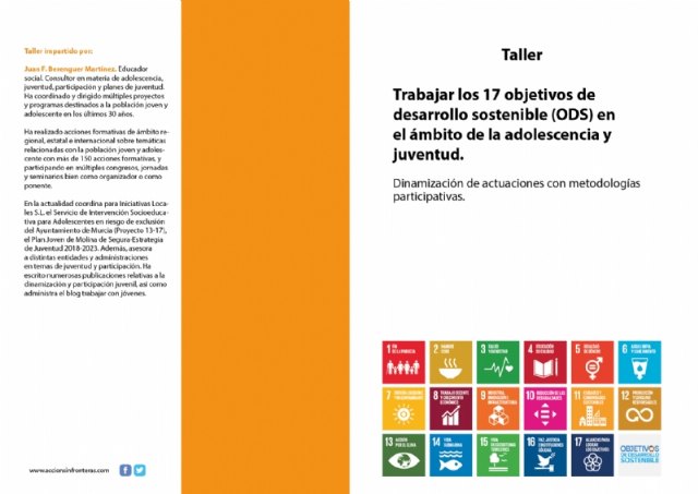 La Concejalía de Juventud colabora en la realización del Taller “Trabajar los 17 objetivos de desarrollo sostenible (ODS) en el ámbito de la adolescencia y juventud”, con una duración de 12 horas y organizado por la Asociación “Jóvenes sin Fronteras”.