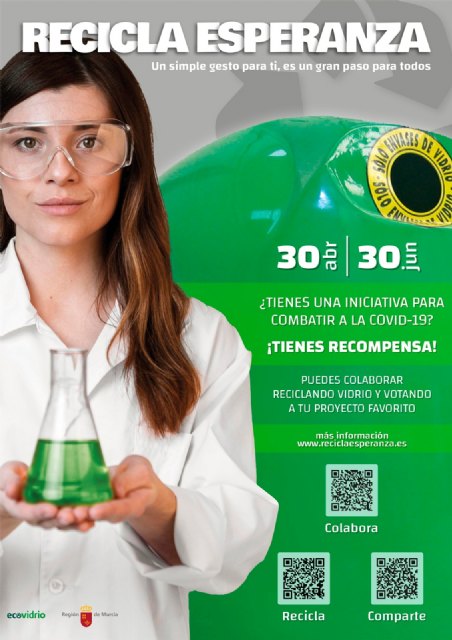 Ecovidrio, la entidad sin ánimo de lucro encargada de la gestión del reciclado de los residuos de envases de vidrio depositados en los contenedores de toda España y el Gobierno de la Región de Murcia, del Ayuntamiento de Totana y todos los municipios de la Región; han puesto en marcha una nueva campaña de sensibilización ciudadana de reciclaje de vidrio, para dar visibilidad a todas las iniciativas de la Región de Murcia que han nacido en estos tiempos de pandemia, en pro de la lucha contra la Covid-19, aportando su grano de arena para ayudar a mejorar la situación actual producida por la pandemia, y mostrar la implicación que tienen con este problema, con la sociedad y con el medio ambiente.