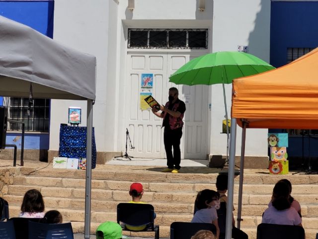 Durante la jornada, que ha contado con actividades en la mañana y tarde, han tenido lugar dos cuentacuentos, la Muestra al Aire Libre con una pintura mural, actuaciones musicales interpretadas por parte de alumnos y alumnas de la Agrupación Musical, rondas de lecturas y un mercadillo de intercambio solidario de las dos Cáritas de Totana.