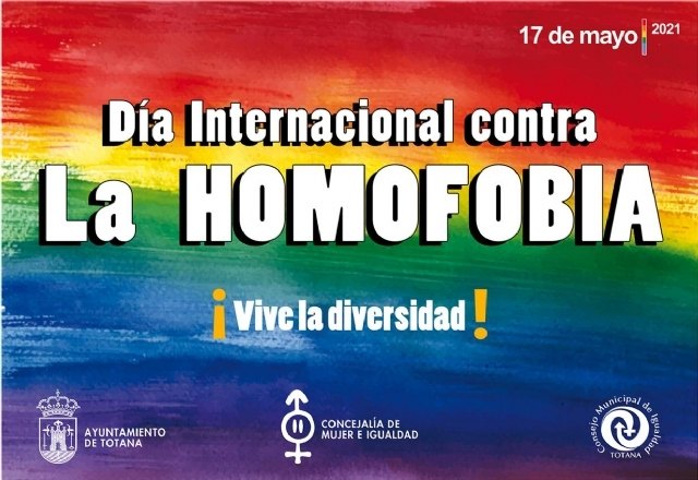 El Ayuntamiento de Totana conmemora hoy, 17 mayo, el Día Internacional contra la Homofobia, con la organización de talleres de sensibilización; jornada en la que se conmemora la fecha de 1990 en la que la Asamblea General de la Organización Mundial de la Salud (OMS) decidió eliminar a la homosexualidad de la lista de enfermedades mentales.
