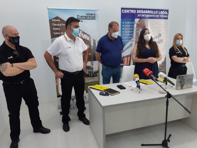 El alcalde de Totana, Juan José Cánovas, y la concejala de Desarrollo Económico, Fomento y Empleo, Inmaculada Blázquez, han suscrito un nuevo convenio de colaboración con un emprendedor totanero que dedicará su actividad a la gestión y servicios de conserjería y control de accesos, Diego Puerto, para la cesión de unas instalaciones del Vivero de Empresas "VIVEM", ubicado en el polígono industrial "El Saladar".