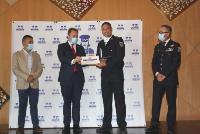 Con la Medalla al Mérito Profesional de la Policía Local, se reconoció la trayectoria profesional meritoria de dos agentes de las Policías Locales, Alfonso Sánchez Martínez, de la Policía Local de Totana, por el meritorio trabajo que está desarrollando a través de Aula Konect@, proyecto que nació en 2018, para la prevención de conductas disruptivas entre jóvenes de Totana; y de Andrés Alba Troya, del cuerpo de Manacor (Islas Baleares), que vio reconocido su trabajo como Agente Tutor y su trabajo en pandemia, con acciones como la entrega de dispositivos electrónicos para evitar que las familias tuvieran que desplazarse a los centros escolares.El agente de la Policía Local de Totana estuvo acompañado durante el acto por el comisario, Alfonso Canales.