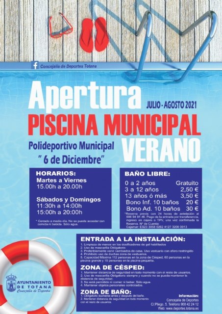 Los usuarios han de solicitar obligatoriamente cita previa en los teléfonos 686 949 146 ó 968 422 412;  y el aforo máximo es de 196 personas.