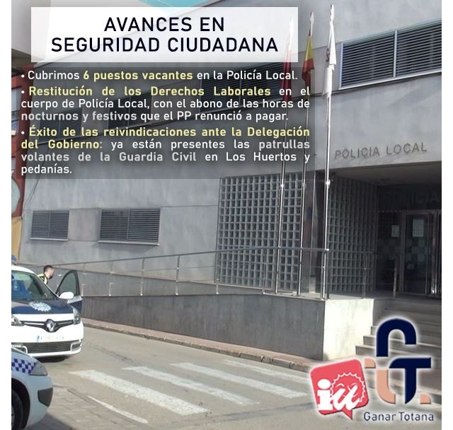 Son hechos que ponen en valor el compromiso y el trabajo de Ganar Totana-Izquierda Unida por la Seguridad Ciudadana.