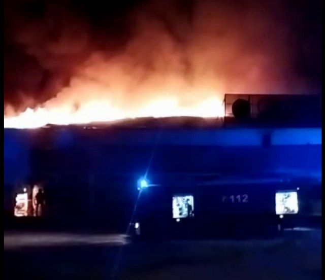 Bomberos trabajan en el incendio en una discoteca abandonada de Totana