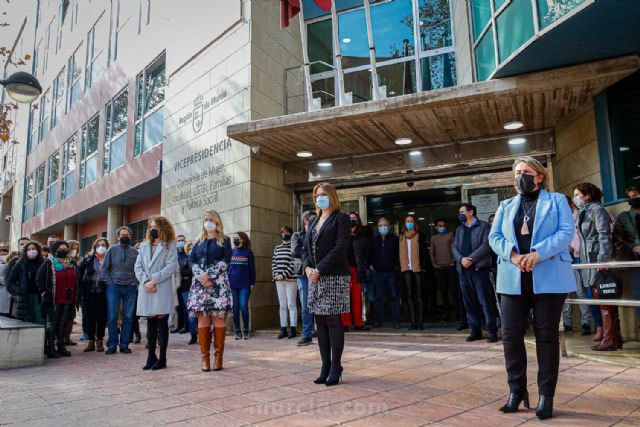 La vicepresidenta y consejera de Mujer, Igualdad, LGTBI, Familias y Política Social, Isabel Franco, participó esta mañana en el minuto de silencio convocado en la Consejería como muestra de la repulsa frente al asesinato de una joven, menor de edad, en Totana, a manos de su expareja, según informaron fuentes regionales en un comunicado.