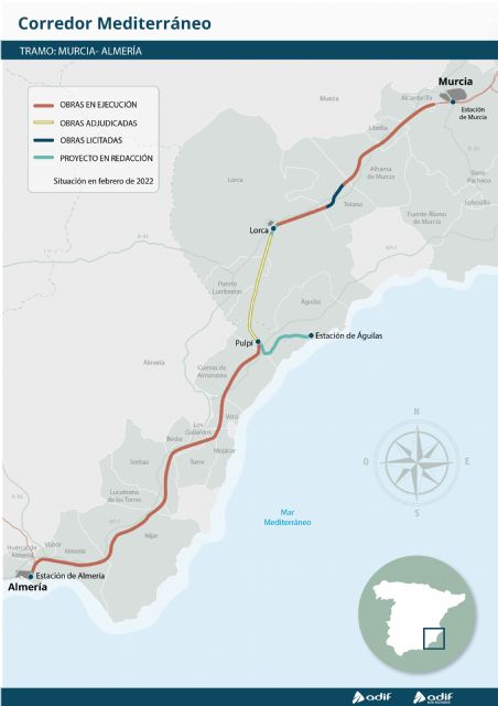 Con esta licitación, todos los tramos entre Murcia y Almería se encuentran en obras o en fase de contratación (licitación o adjudicación), a excepción de la integración en el núcleo de Lorca.