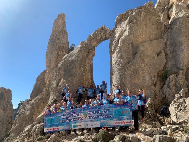 Una expedición formada por mas de 25 personas aficionadas al senderismo que conforman el grupo de amigos de Totana “Los Andarines” y "Los ruteros de Roldán" se han sumado al Día Mundial de las Lipodistrofias y han dado visibilidad a la Asociación Internacional de Familiares y Afectados de Lipodistrofias (AELIP)