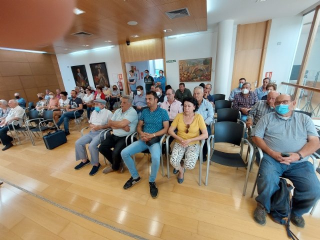 En el salón de plenos se congregaron el presidente de la plataforma, José Antonio Heredia, acompañado por más de medio centenar de vecinos afectados por la LAT de la Catenaria del AVE, así como concejales de todos los grupos municipales con representación en el Ayuntamiento de Totana.