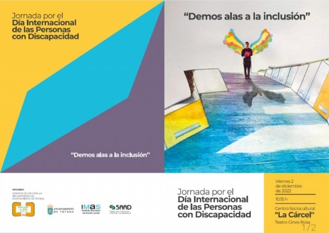 La Concejalía de Bienestar Social comunica que este próximo viernes 2 de diciembre el Teatro Ginés Rosa va a acoger la celebración de la Jornada “Demos alas a la inclusión”, organizada por el Ayuntamiento de Totana en conmemoración del Día Internacional de las Personas con Discapacidad.