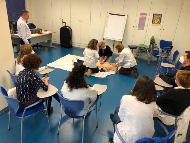 Un total de 35 profesionales de Atención Primaria del centro de Salud Totana Sur participaron ayer en una actividad formativa sobre soporte vital básico y el manejo del desfibrilador externo automático (DEA).